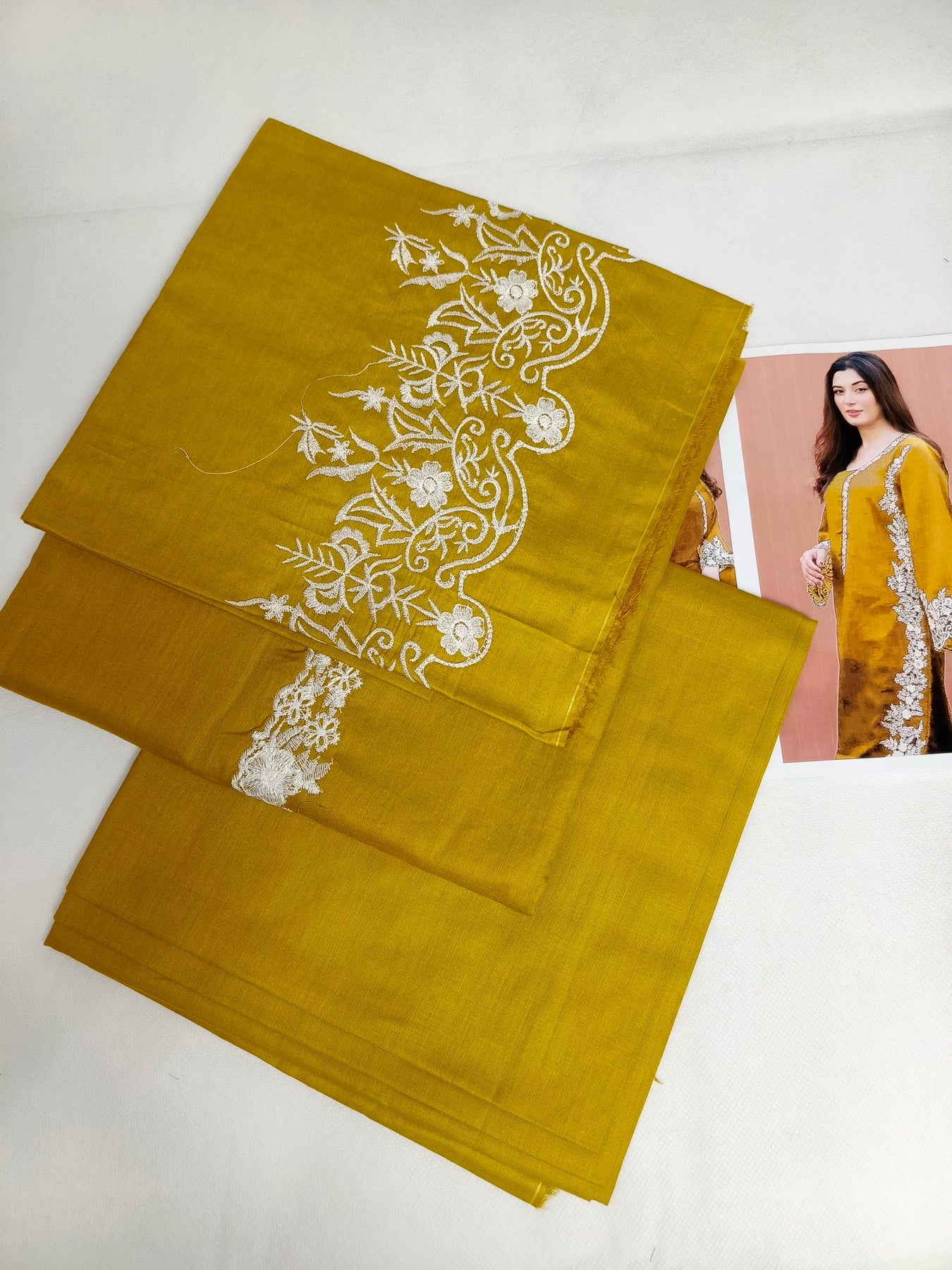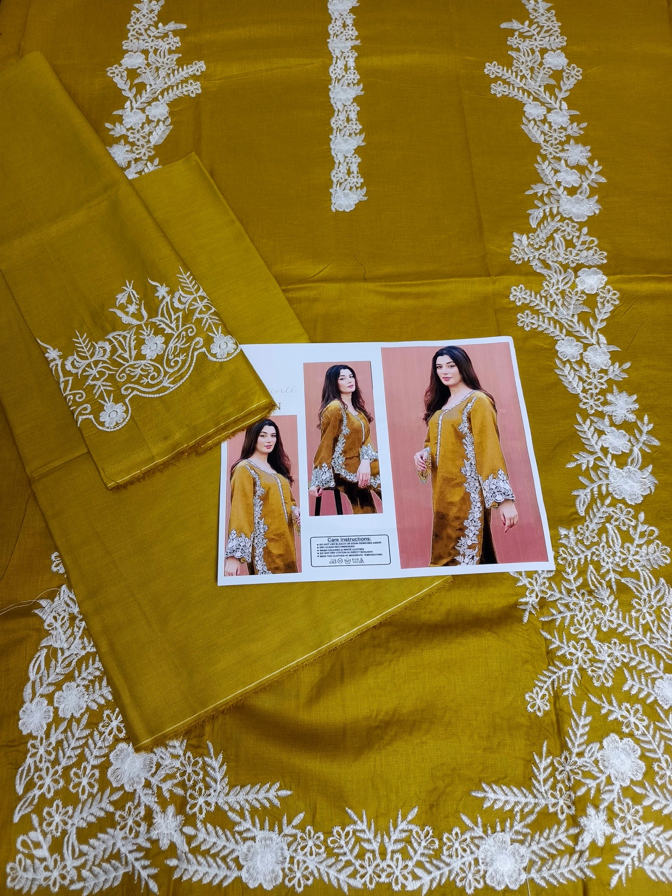 This unstitched lawn 2-piece suit features intricate front embroidery paired with dyed trousers, offering a refined canvas for custom tailoring. Crafted from breathable lawn fabric, it ensures comfort and elegance, making it ideal for warm weather. The detailed embroidery enhances the suit’s aesthetic, providing a sophisticated look that can be styled to suit various occasions. Please note, colors may vary slightly due to lighting conditions during photography.