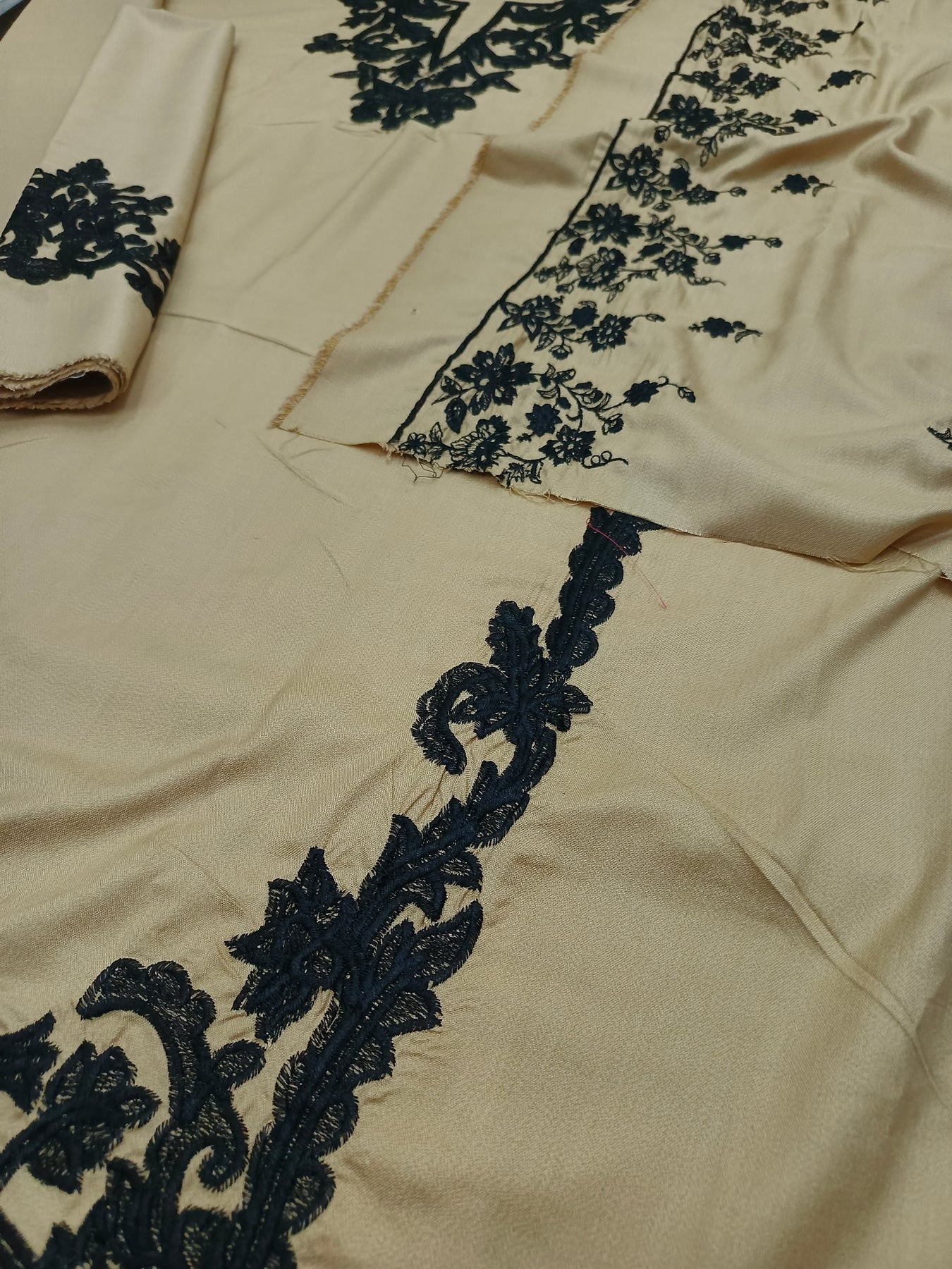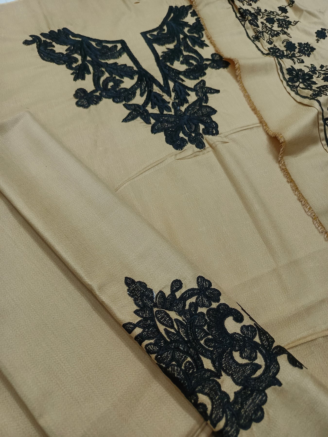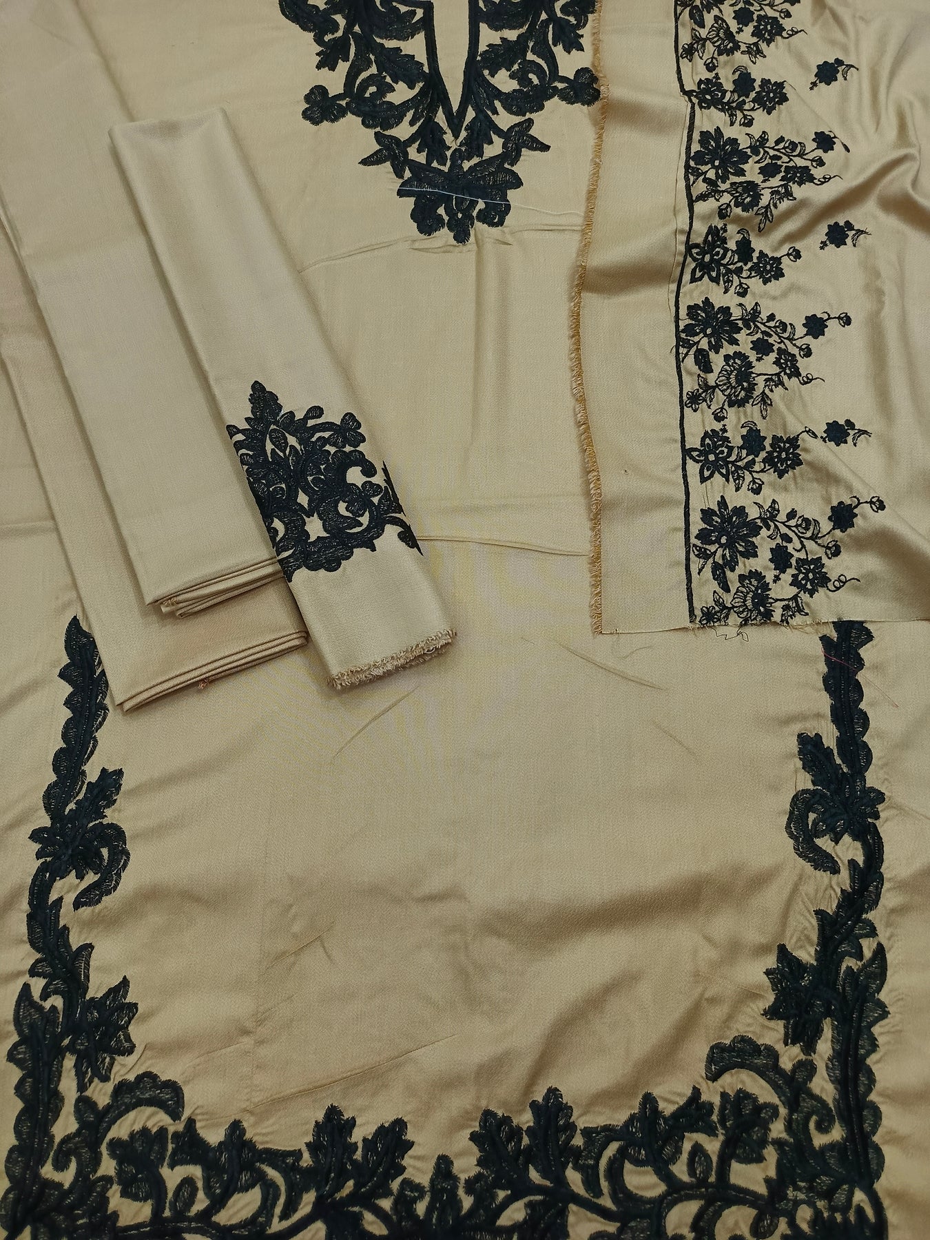 DHANAK 3PcFRONT FULL EMBROIDEREDNECK EMBROIDERED EMBROIDERED SLEEVES PLAIN TROUSEREMBROIDERED DHANAK SHAWL