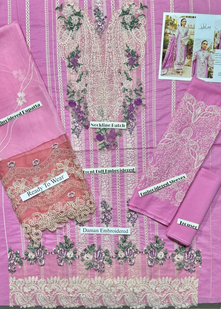 SUMMER LAWN LAWN 3pc QUALITY FRONT FULL CHIKENKARI EMBROIDERY LAWN SHIRT NECKLINE HEAVY EMBROIDERED PATCH DAMAN CUTWORK EMBROIDERED PATCH SLEEVES EMBROIDERED