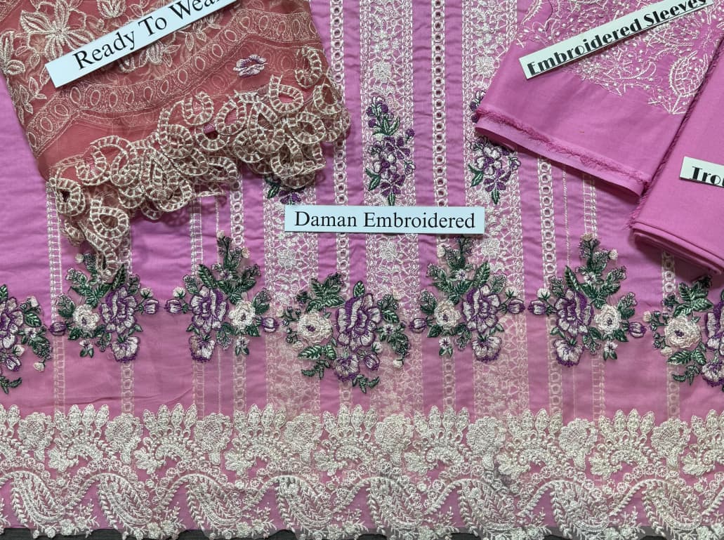 HEAVY EMBROIDERED READY TO WEAR KHADDI NET DUPATTA SAME STUFF TROUSER