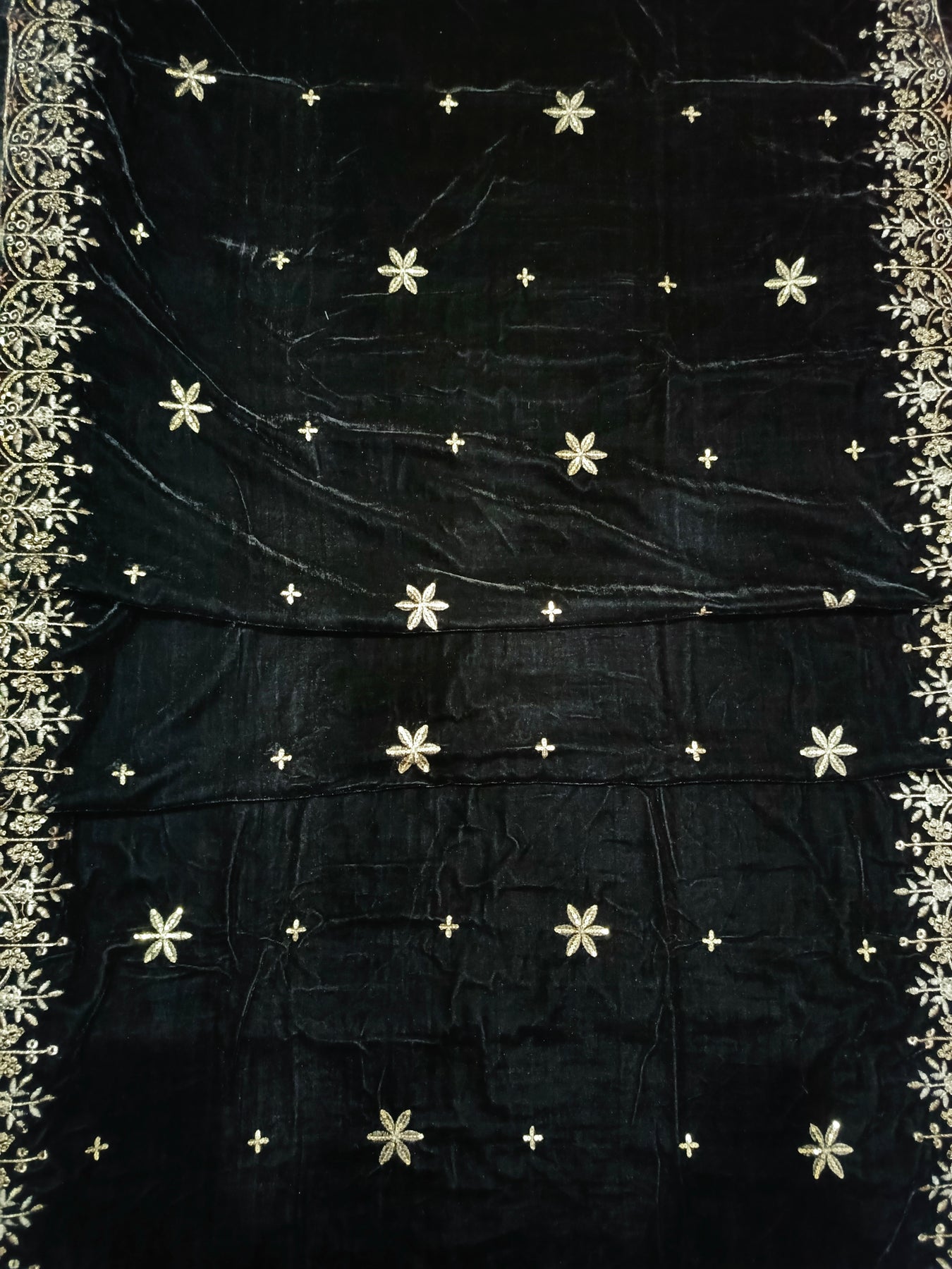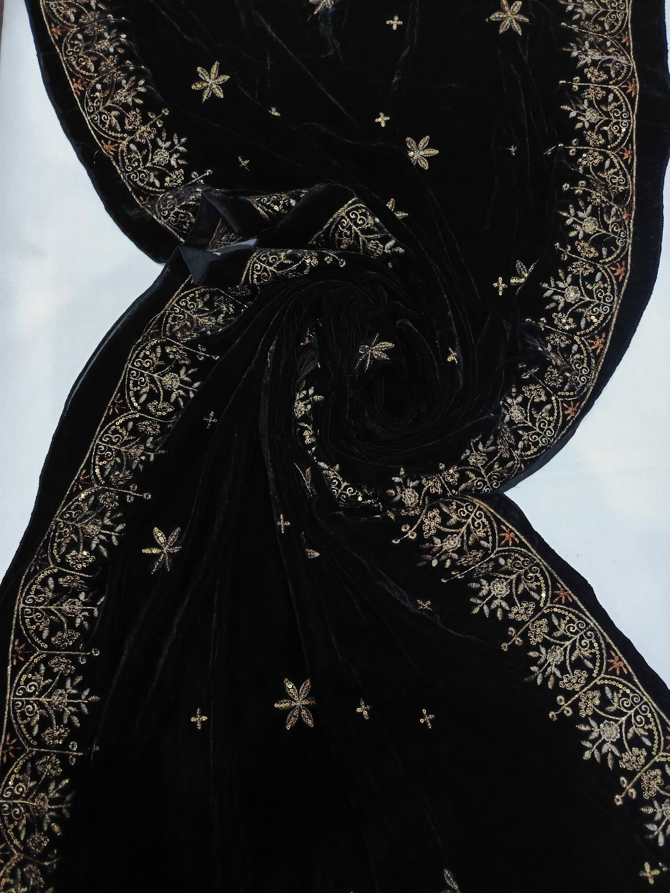 Embroidered Micro Velvet Shawl - Black