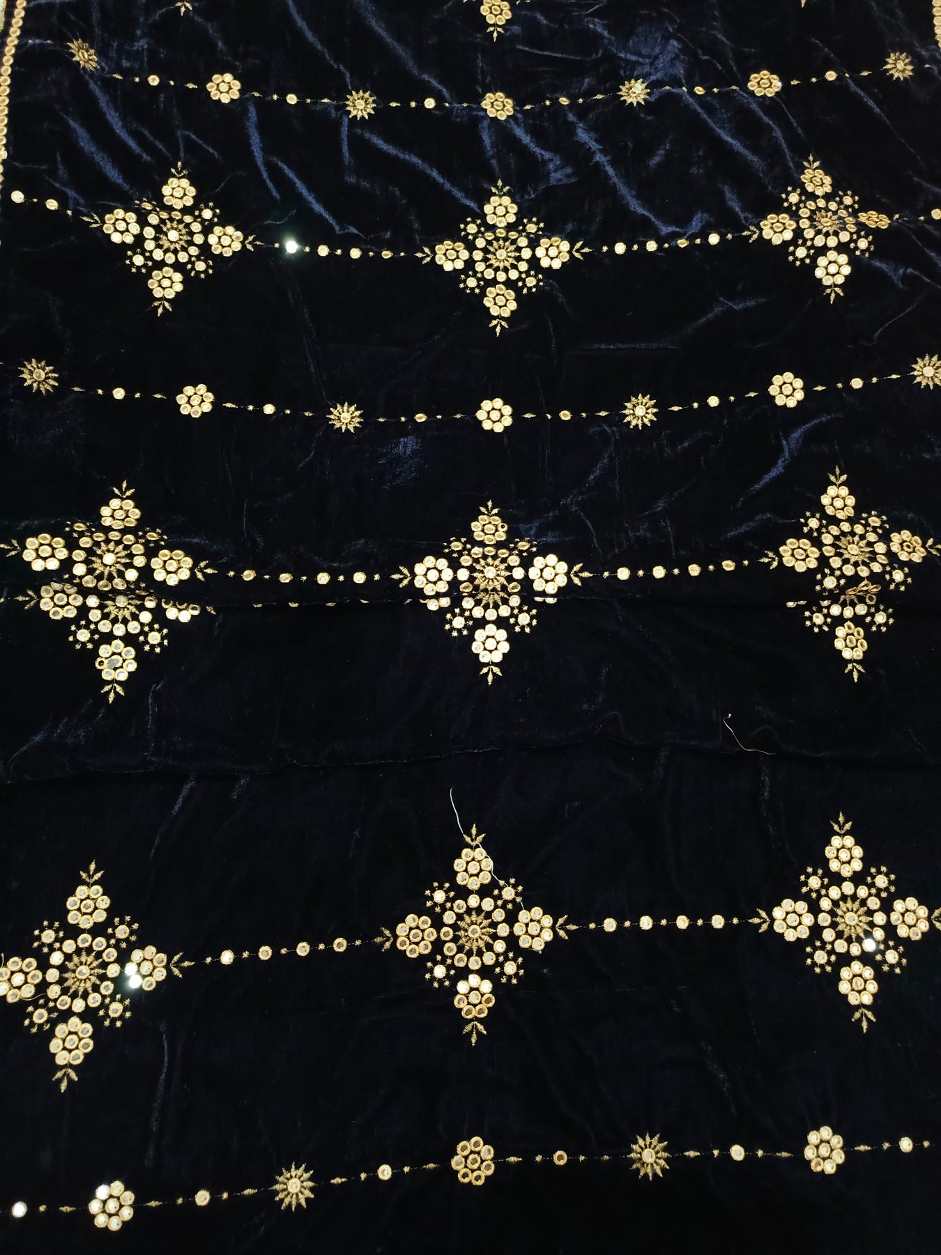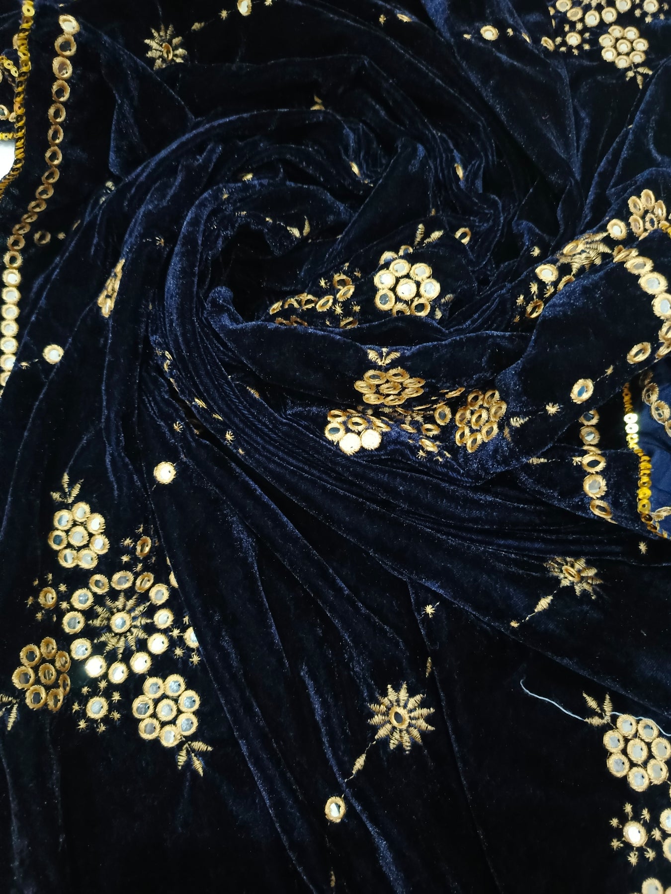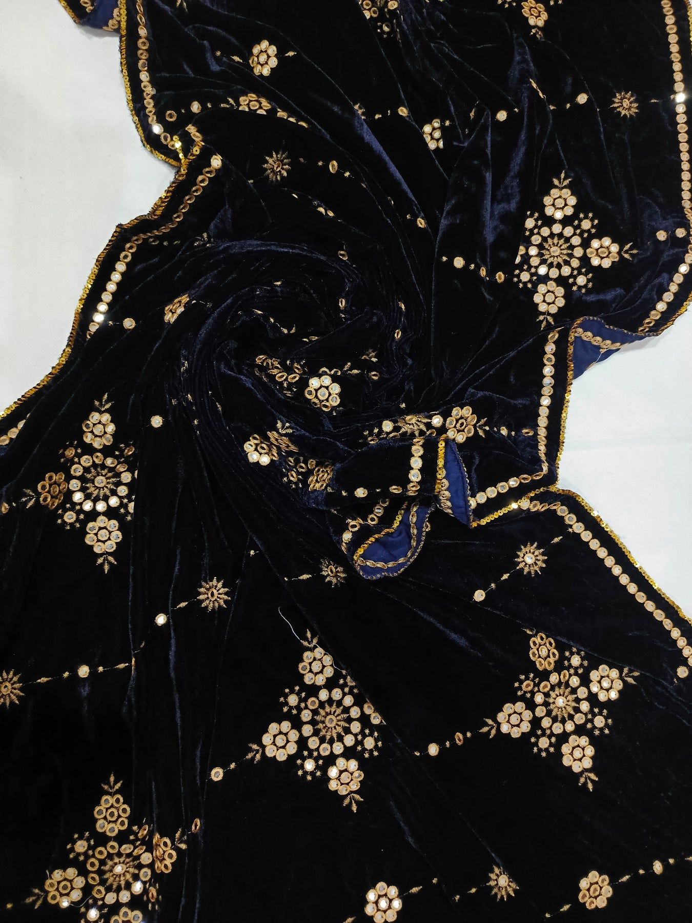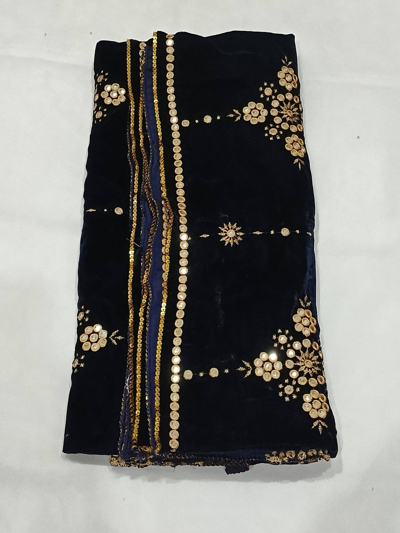 Embroidered Micro Velvet Shawl - Dark Blue