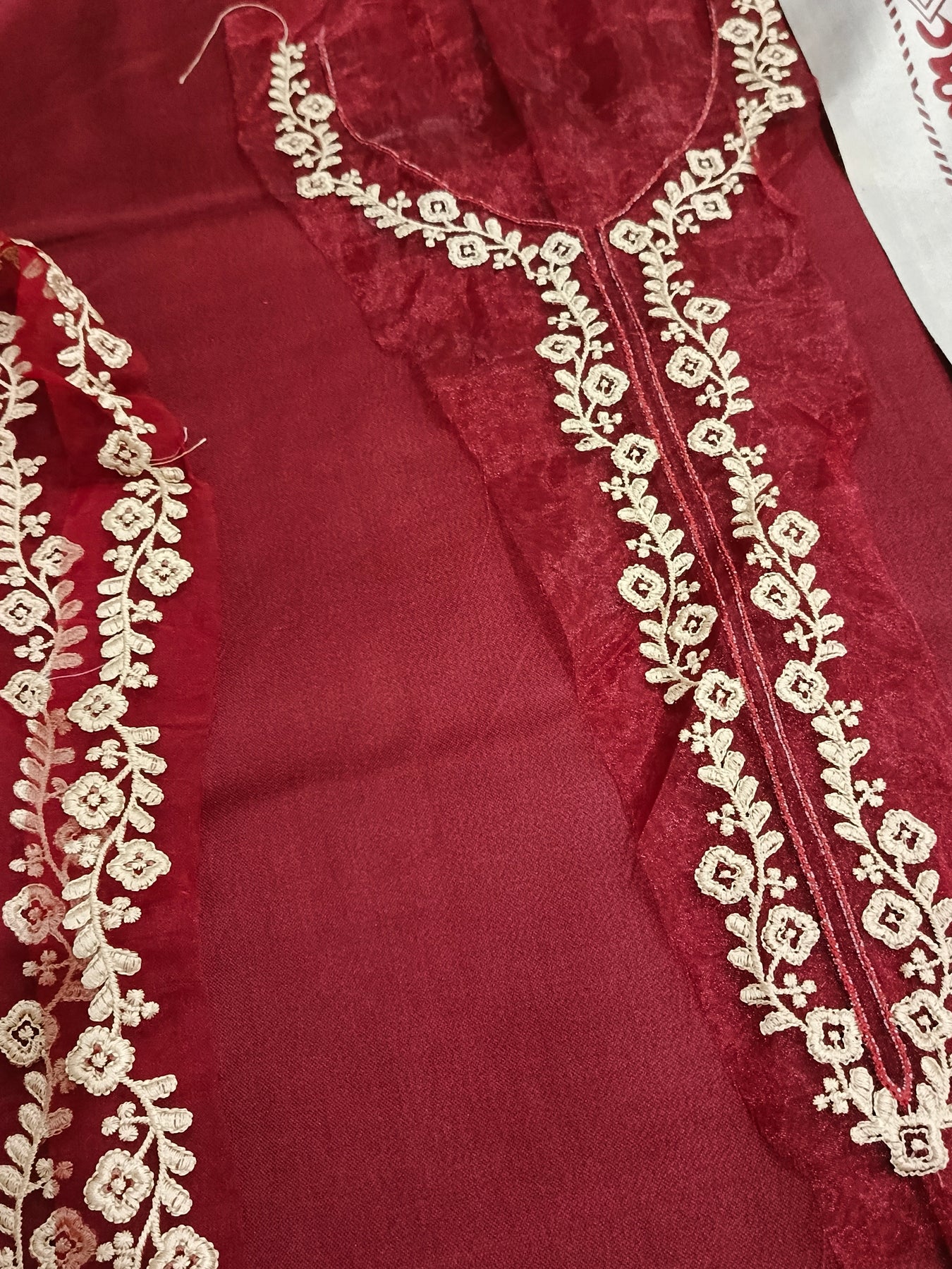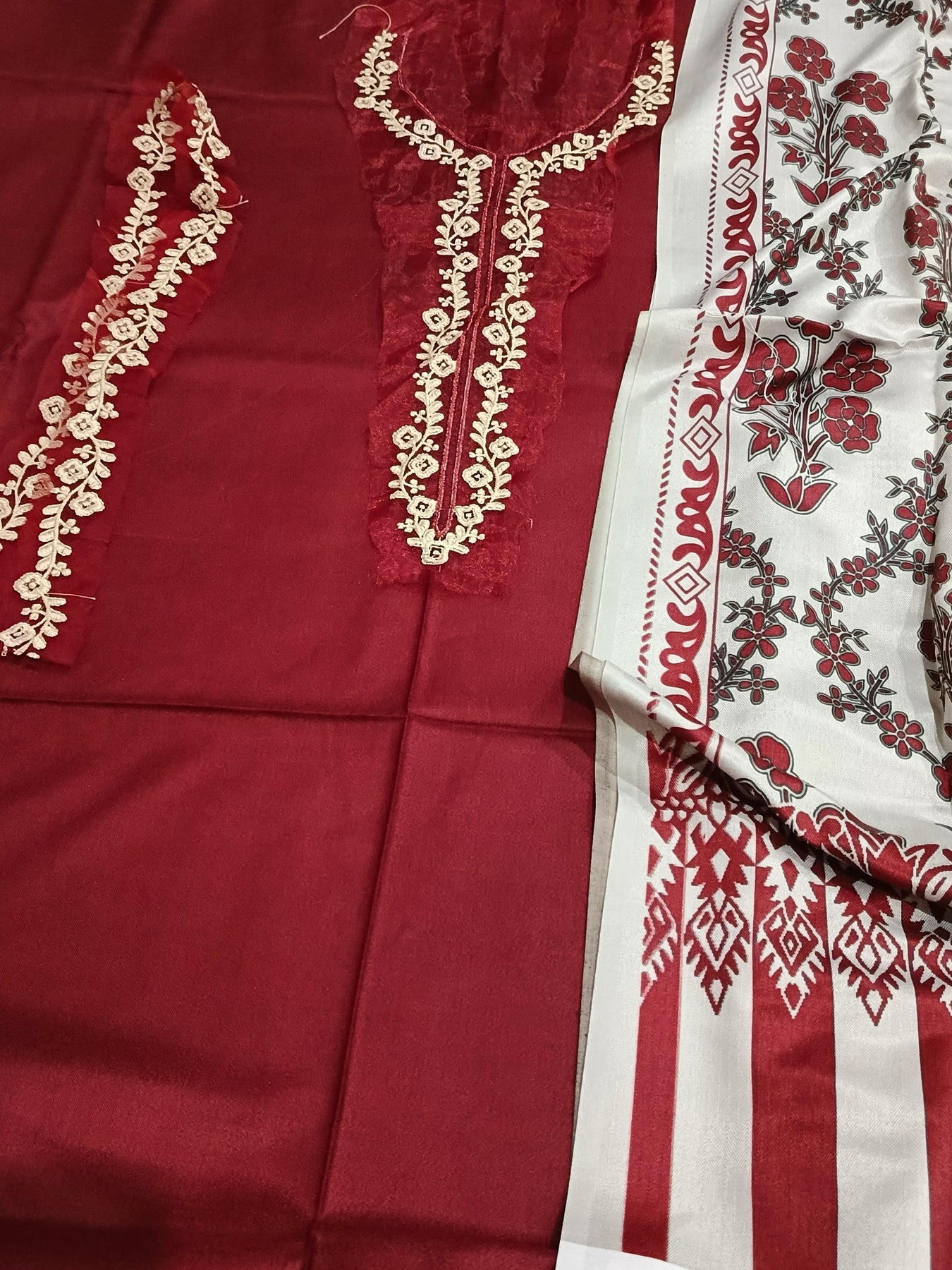 DHANAK 3PcFRONT NECKLINE PATCHSLEEVES PATCHPLAIN TROUSERPrinted Wool Shawl