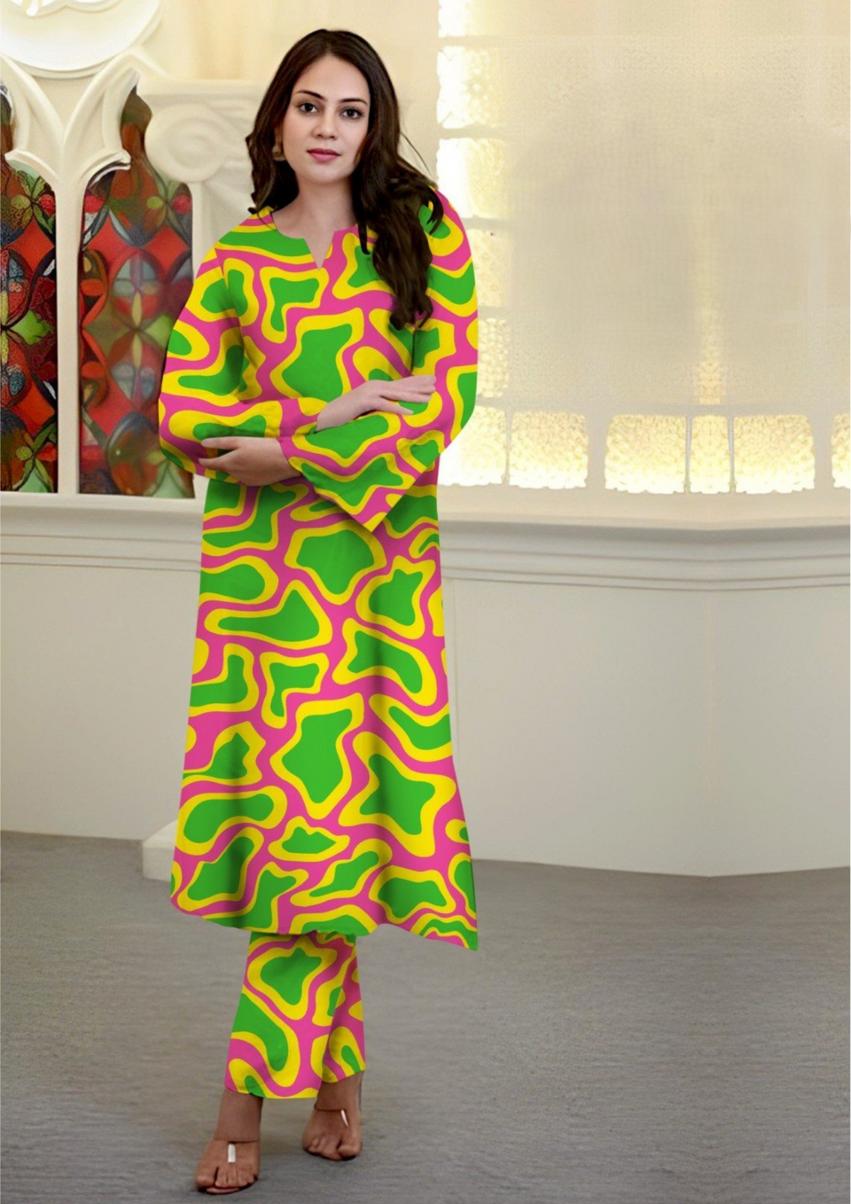 Glow Wave All-Over Printed Chamki Linen 2-Piece Suit